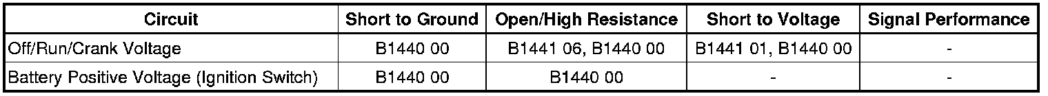 * A short to ground in the run/crank ignition 1 voltage circuit of the run crank relay will cause an open fuse to the ignition switch. DTC B1428 should be current.