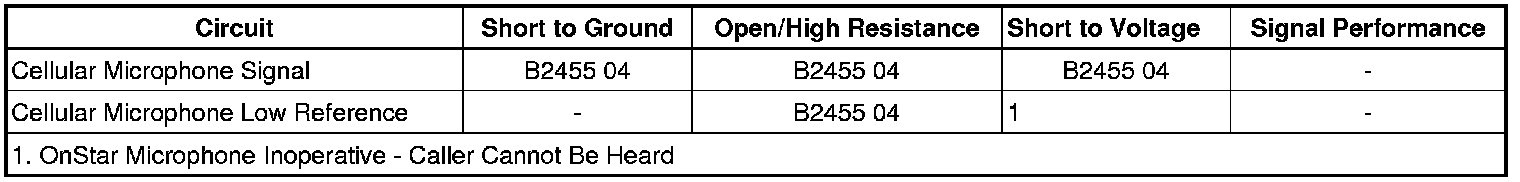 * The CIM detects an open, short to ground or short to voltage in the cellular microphone signal circuit for 10 seconds or greater.
