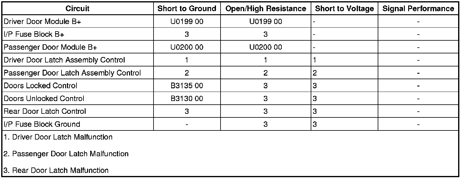 • If the rear door latches do not perform as specified, test the control circuit for a short to voltage. If the circuit tests normal, replace the I/P fuse block.