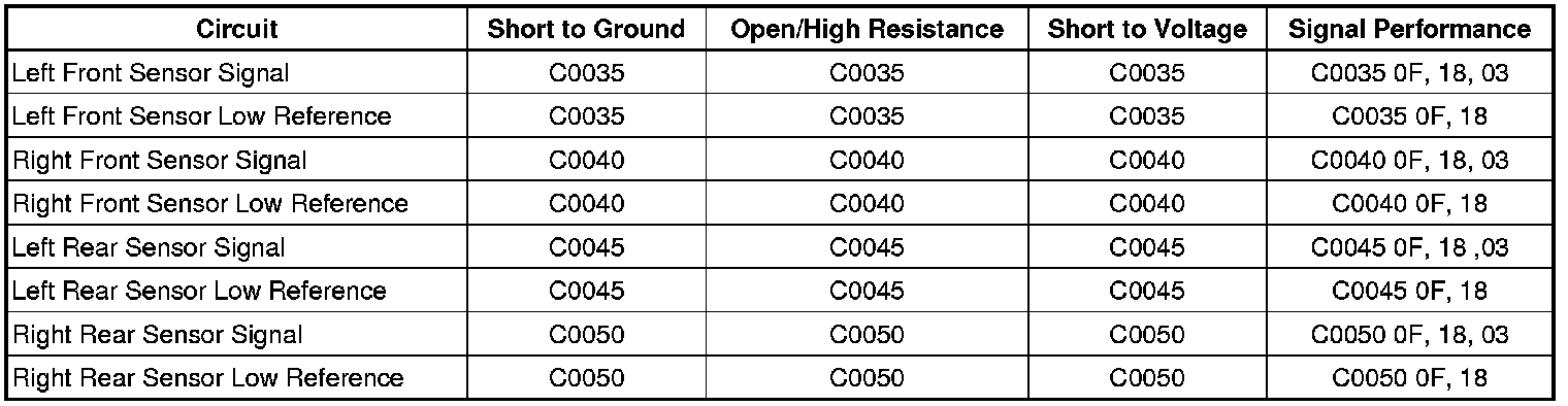 DTC C0035-C0050