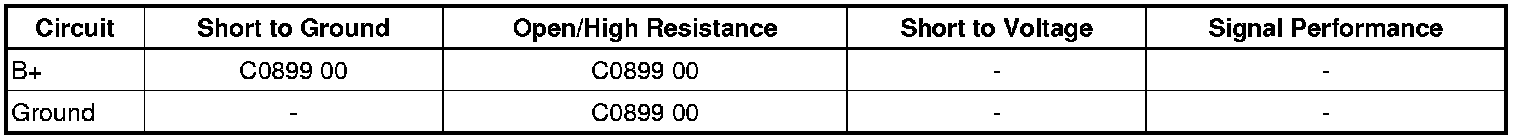 The electronic brake control module (EBCM) monitors the voltage available on the battery positive (B+) circuit. A low voltage condition prevents the system from operating properly. If the EBCM detects low voltage on the B+ circuit, DTC C0899 00 will set.