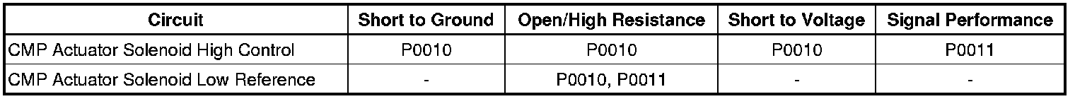 - Camshaft Position (CMP) Actuator Solenoid Control Circuit