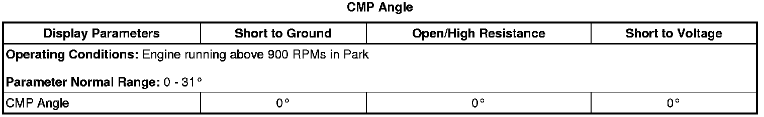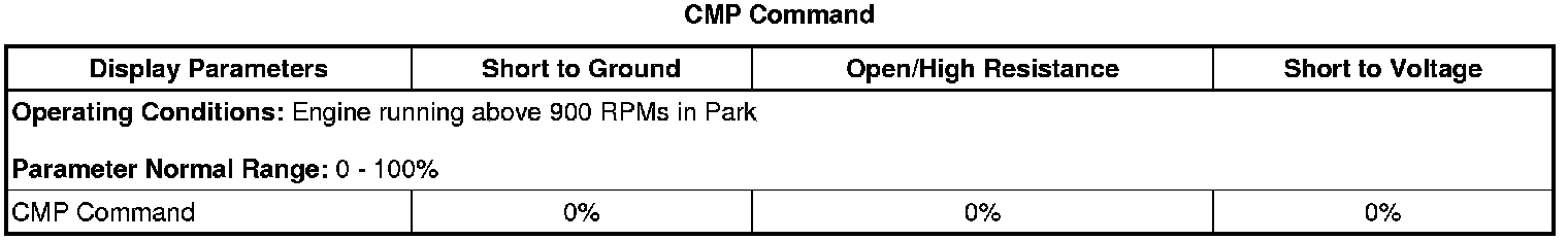5. Command the CMP actuator from zero to 25 degrees. Verify the scan tool CMP actuator ckt short to volts test status parameter is OK.