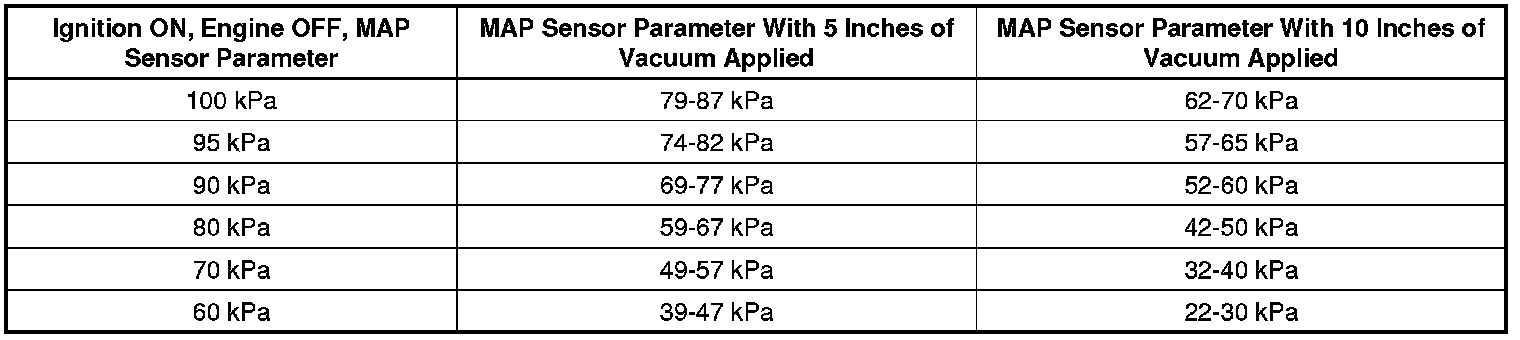 3. Use the observed MAP Sensor Scan Tool parameter that is closest to a value that is indicated in the first column.