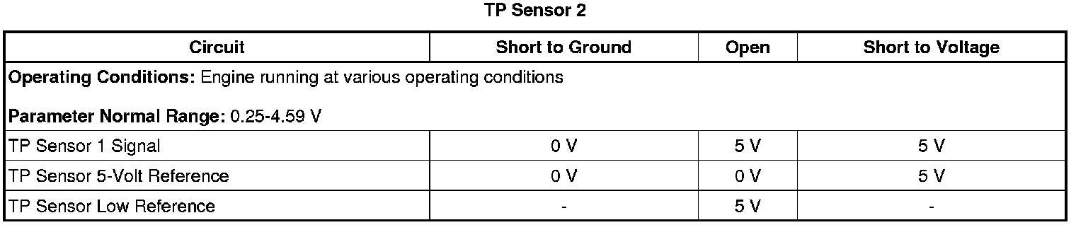 - Throttle Position (TP) Sensor 2 Circuit Low Voltage
