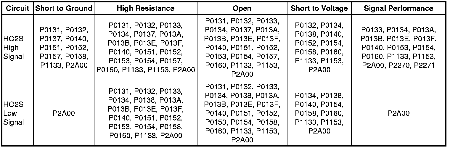 DTC P0133, P0134, P013A, P013B, P013E, P013F, P0140, P1133, P2270, P2271, or P2A00