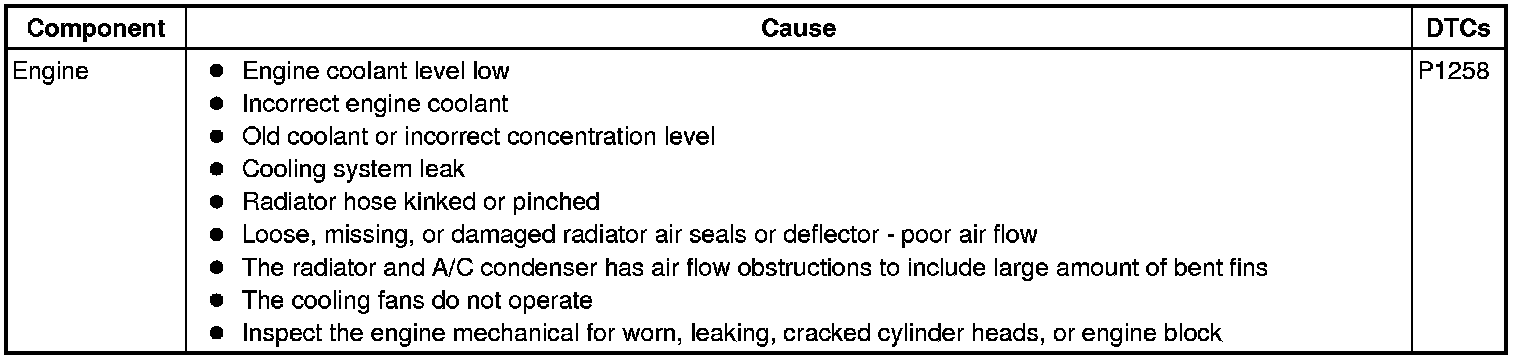 • If the engine coolant temperature (ECT) was above 125°C (257°F) when the DTC set, refer to Engine Overheating (Engine Overheating) and correct that concern first.