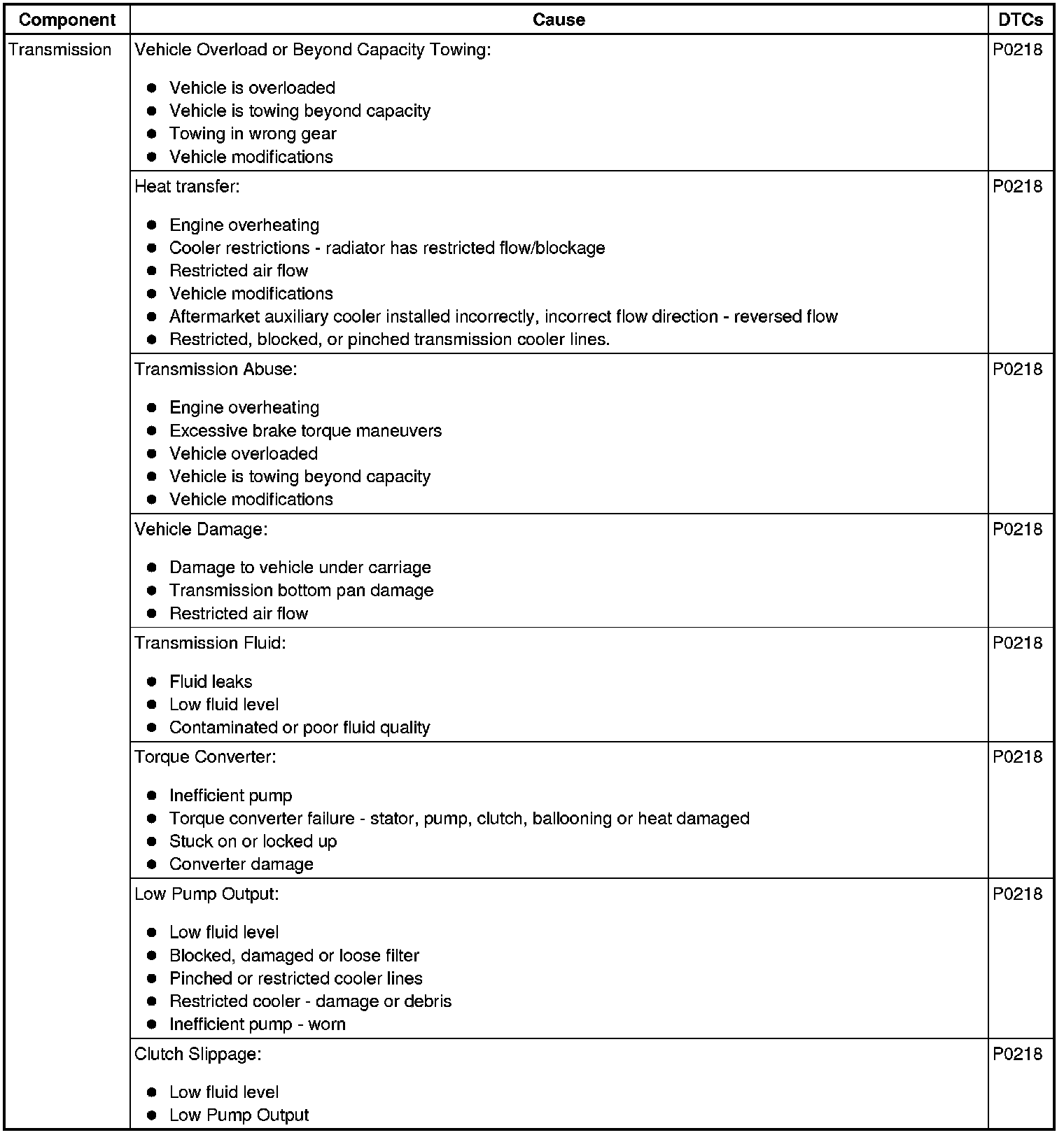 - Transmission Fluid Overtemperature