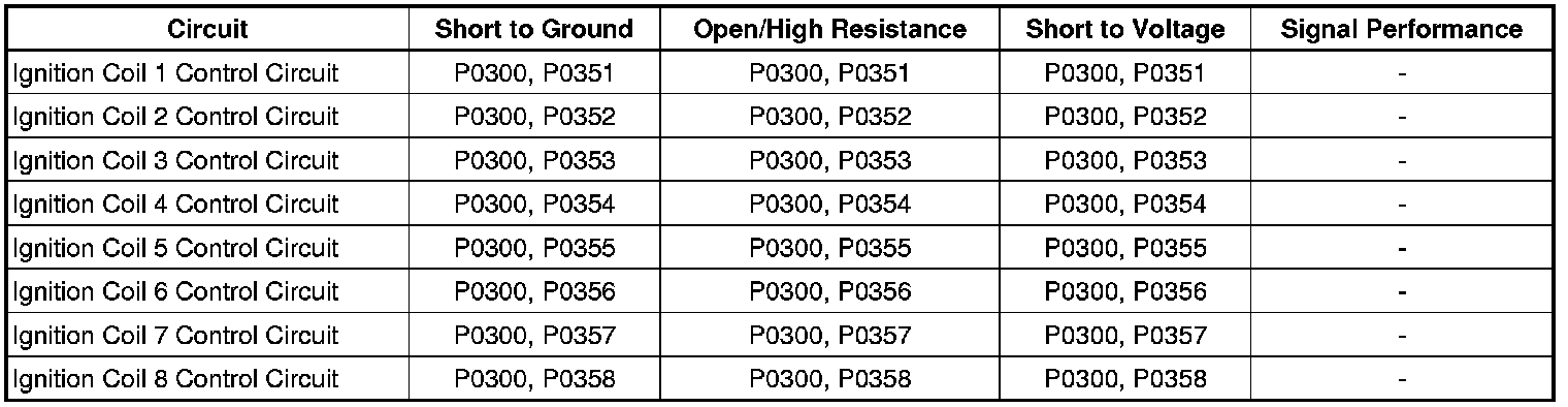 Important: A high resistance on any IC circuit can cause a misfire condition, before DTCs P0351-P0358 set.
