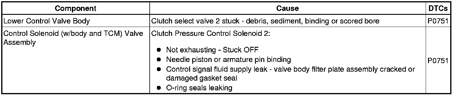 * Inspect clutch select valve 2 (CSV2) fluid circuits for blockage.