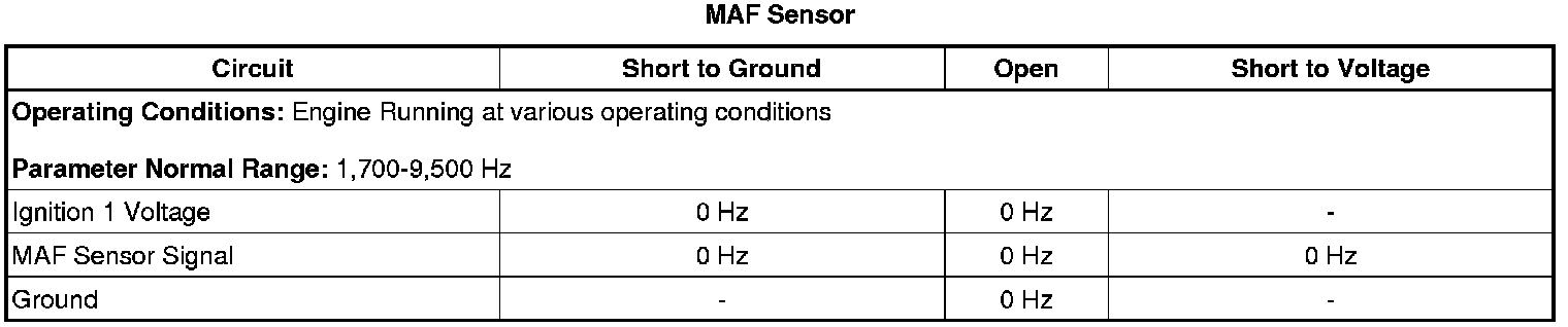 * Depending on the current ambient temperature, and the vehicle operating conditions, a MAF sensor signal circuit that is shorted to the IAT signal circuit will increase or decrease the MAF sensor signal that is interpreted by the ECM. Additionally it may cause a rapid fluctuation in the IAT Sensor parameter.