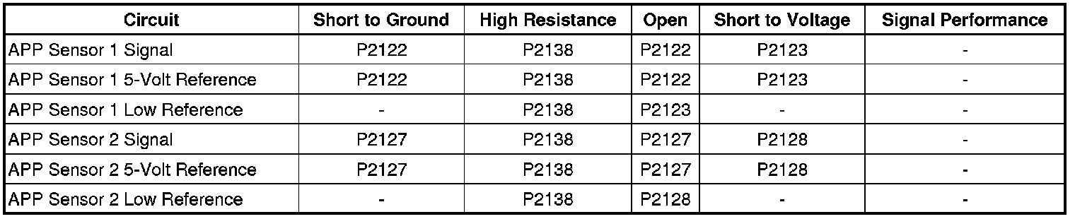 * DTCs P2120, P2122, P2123, P2125, P2127, P2128, and P2138 are Type A DTCs.
