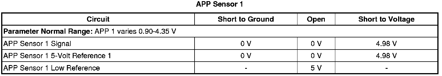- Accelerator Pedal Position (APP) Sensor 1 Circuit High Voltage