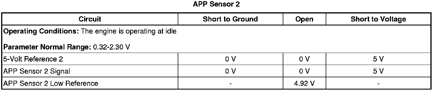 - Accelerator Pedal Position (APP) Sensor 2 Circuit High Voltage