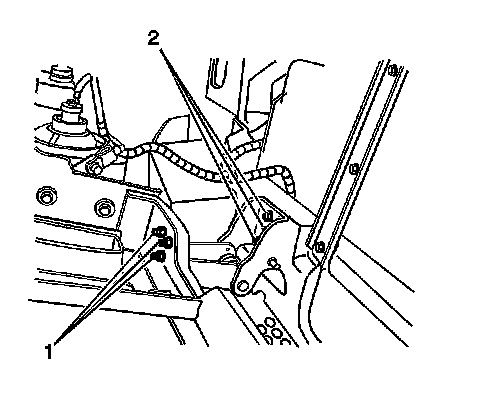 2. Install the bolts (2) retaining the hinge to the front bumper support.
