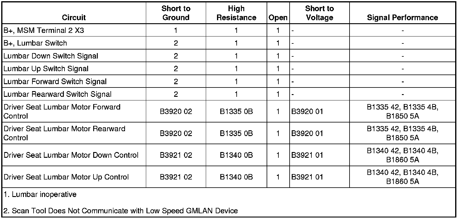 3. If all lumbar switch inputs to the MSM function normal, refer to the Lumbar Motor Control Circuit Test.