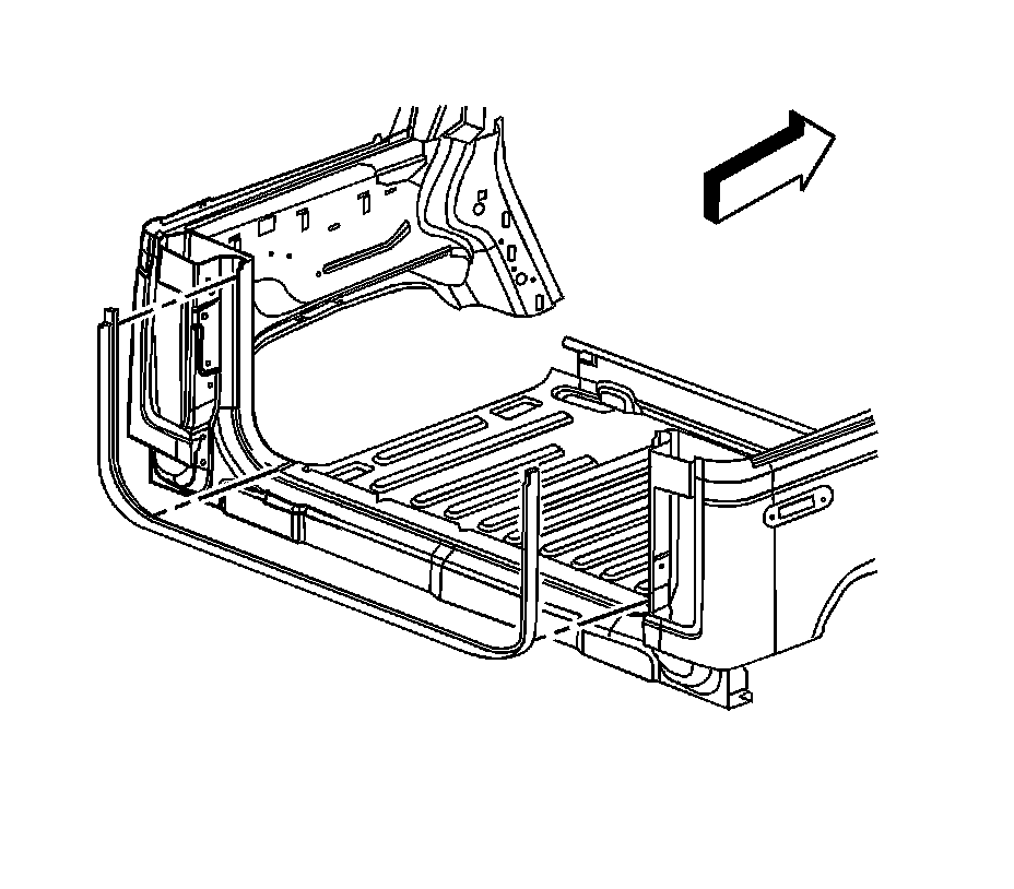 1. Position the weatherstrip to one side of the pinch-weld flange at the underside of the cargo box rail protector.