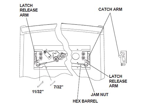 - If the catch is too far from the pin adjust the latch rearward and inspect the cable tension.