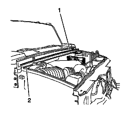2. Remove the rear hood seal (1) by pulling up on the seal from one end.