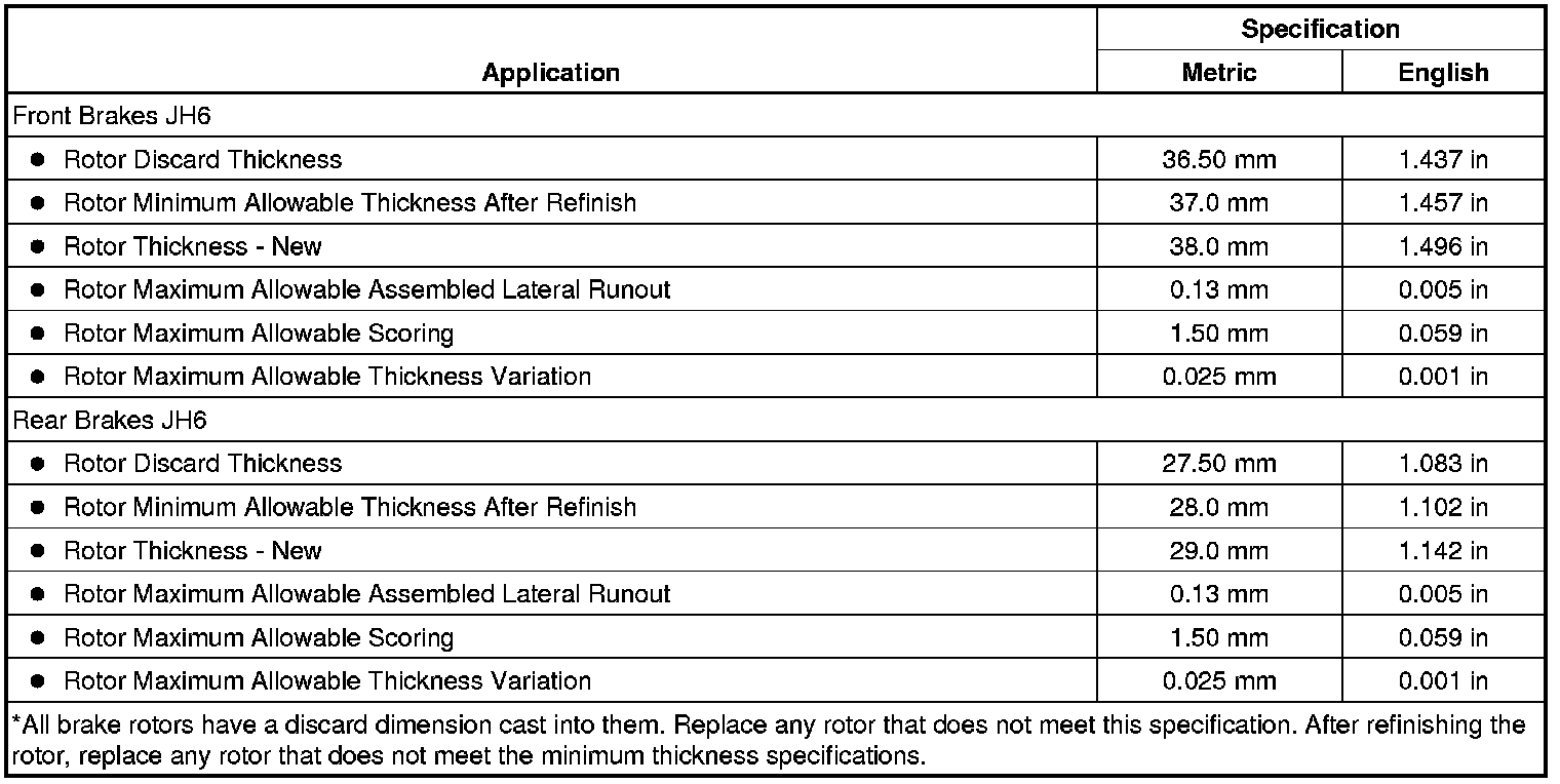 Disc Brake Component Specifications