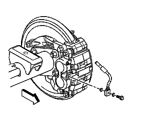 9. Connect the brake hose at the caliper by installing the brake hose to caliper bolt.