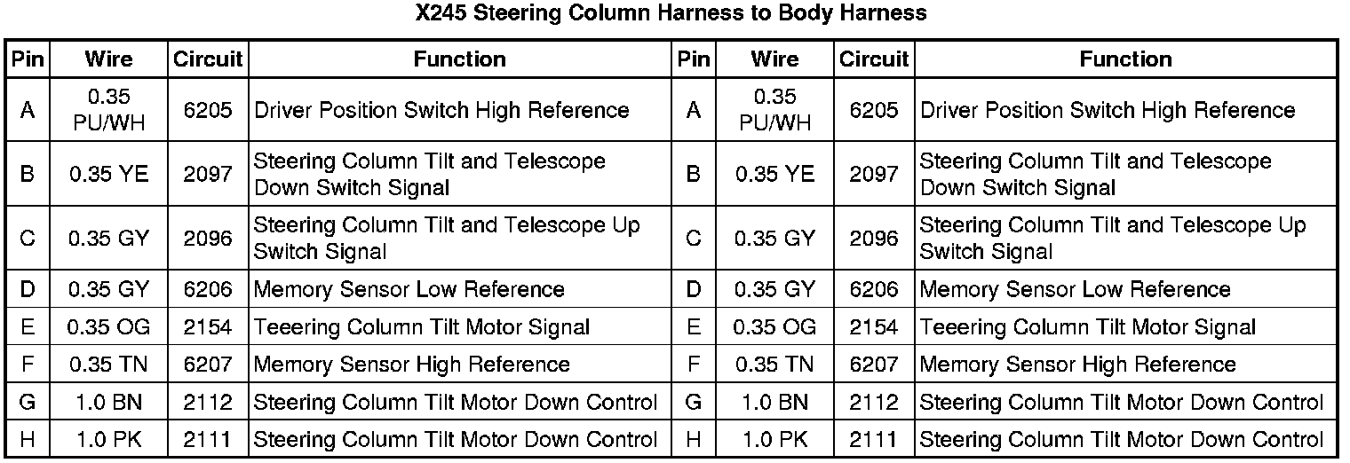 X245 Steering Column Harness to Body Harness