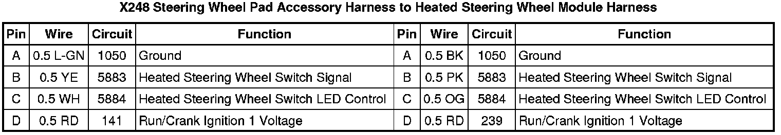 X248 Steering Wheel Pad Accessory Harness to Heated Steering Wheel Module Harness
