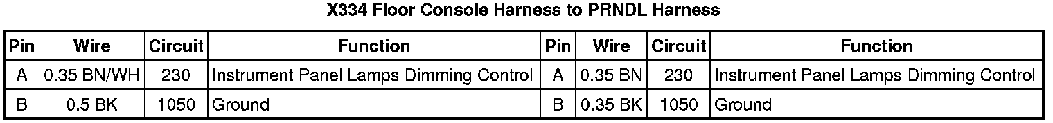 X334 Floor Console Harness to PRNDL Harness