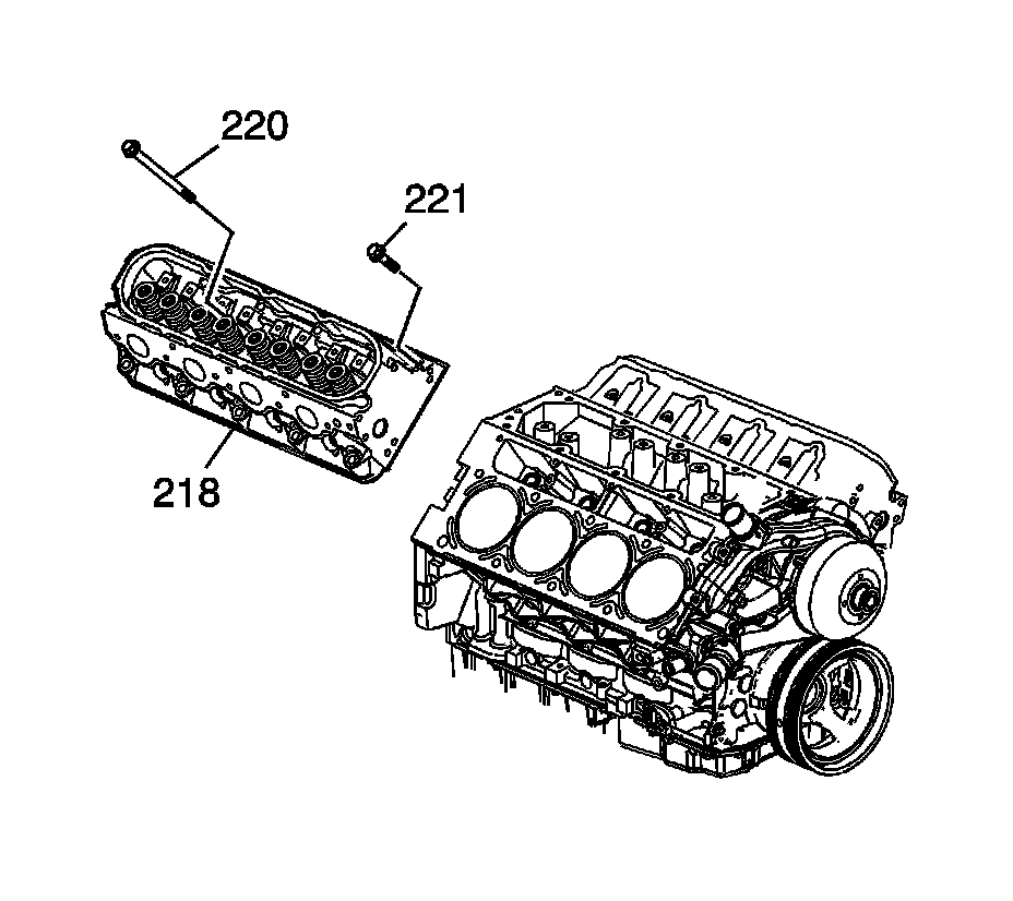 8. Remove and discard the cylinder head bolts (220, 221).