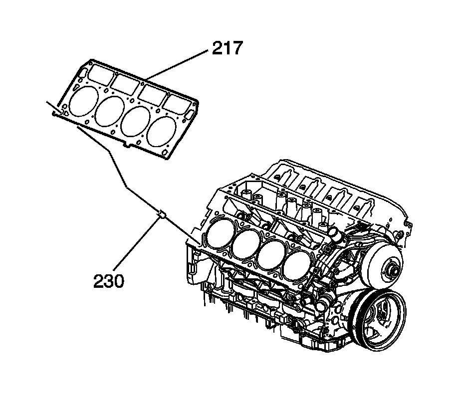 10. Remove and discard the cylinder head gasket (217).