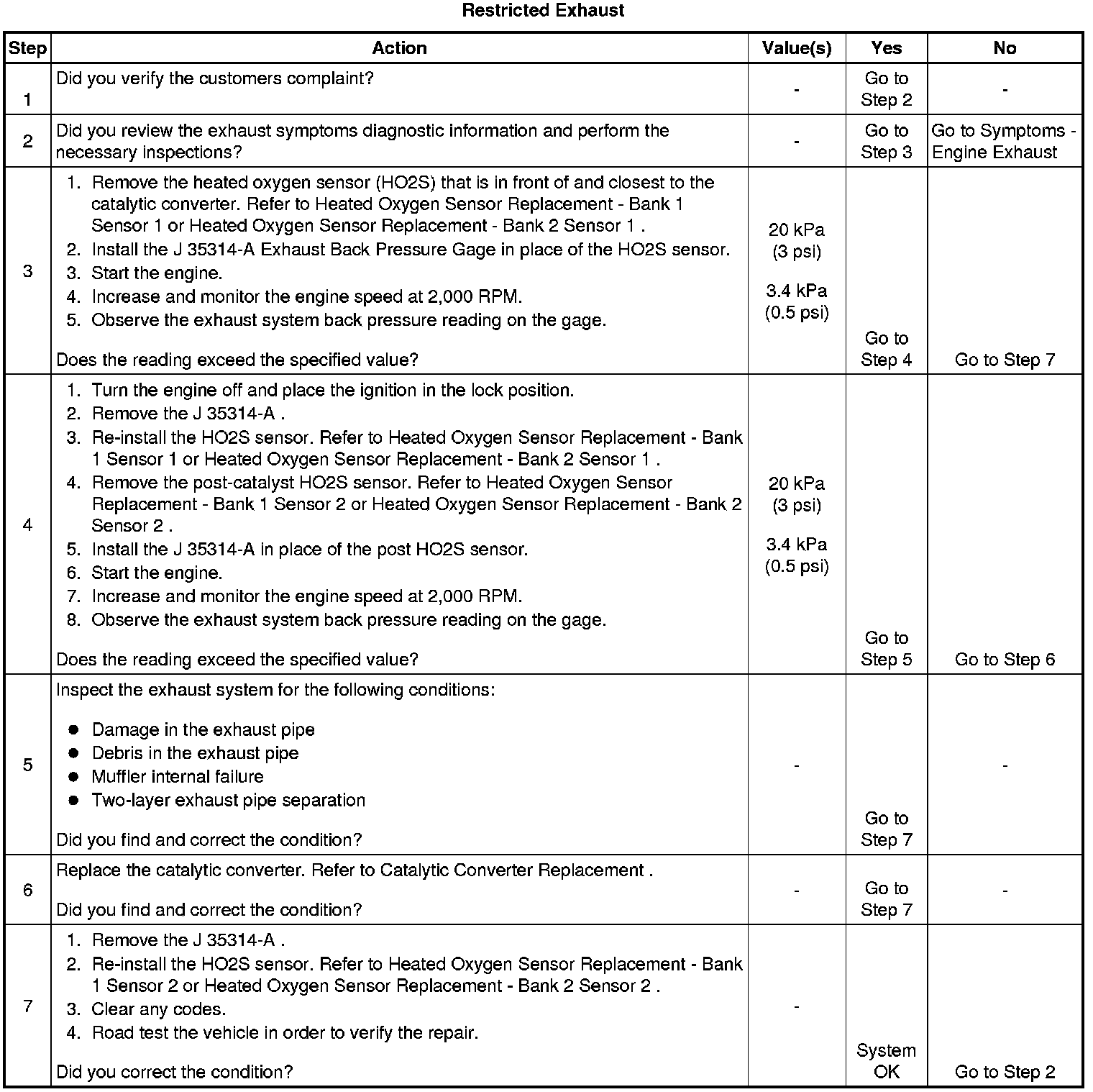 7. Confirming that the condition has been fixed is essential. If the symptom still exists and the vehicle has a dual exhaust system, proceed to Step 2 and repeat diagnostic procedure on the opposite exhaust pipe.
