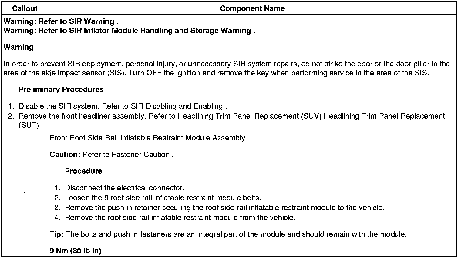 Inflatable Restraint Roof Side Rail Module Replacement - Front