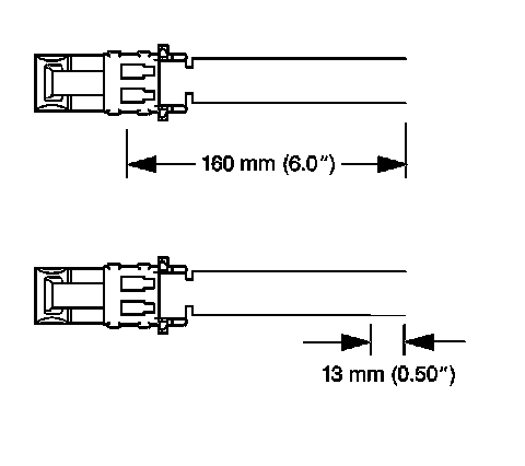 7. Strip 13 mm (0.5 in) of insulation from each of the connector wire leads.