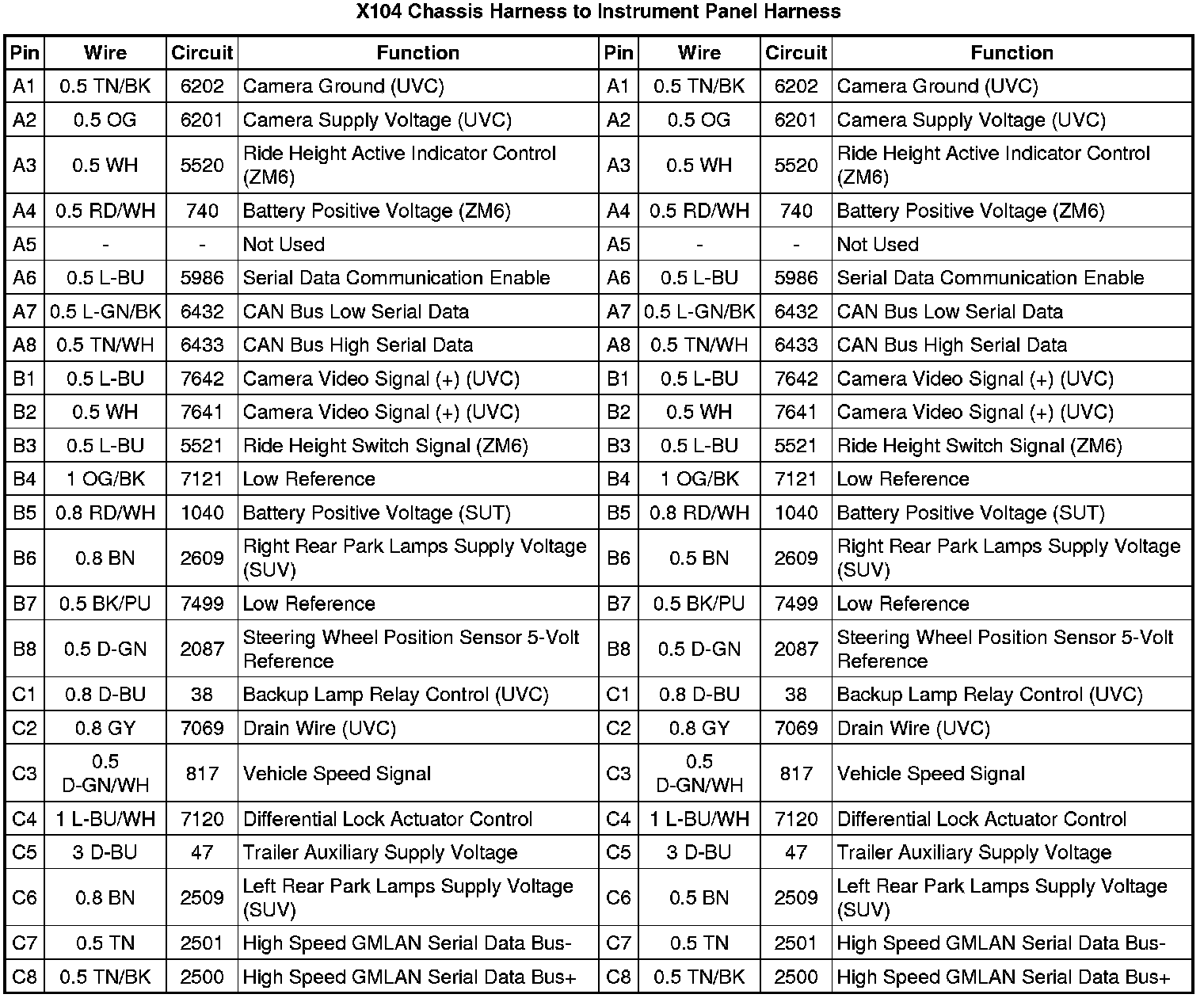 X104 Chassis Harness to Instrument Panel Harness