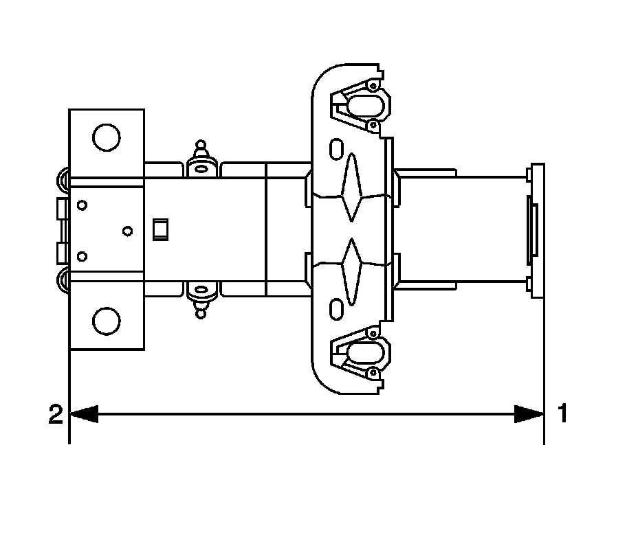 * Inspect for jacket assembly collapse by measuring the distance from the steering column support bracket mounting plate (1) to the lower edge of the jacket lower bracket (2). Replace the jacket assembly if the measured dimensions are less than 286 mm.