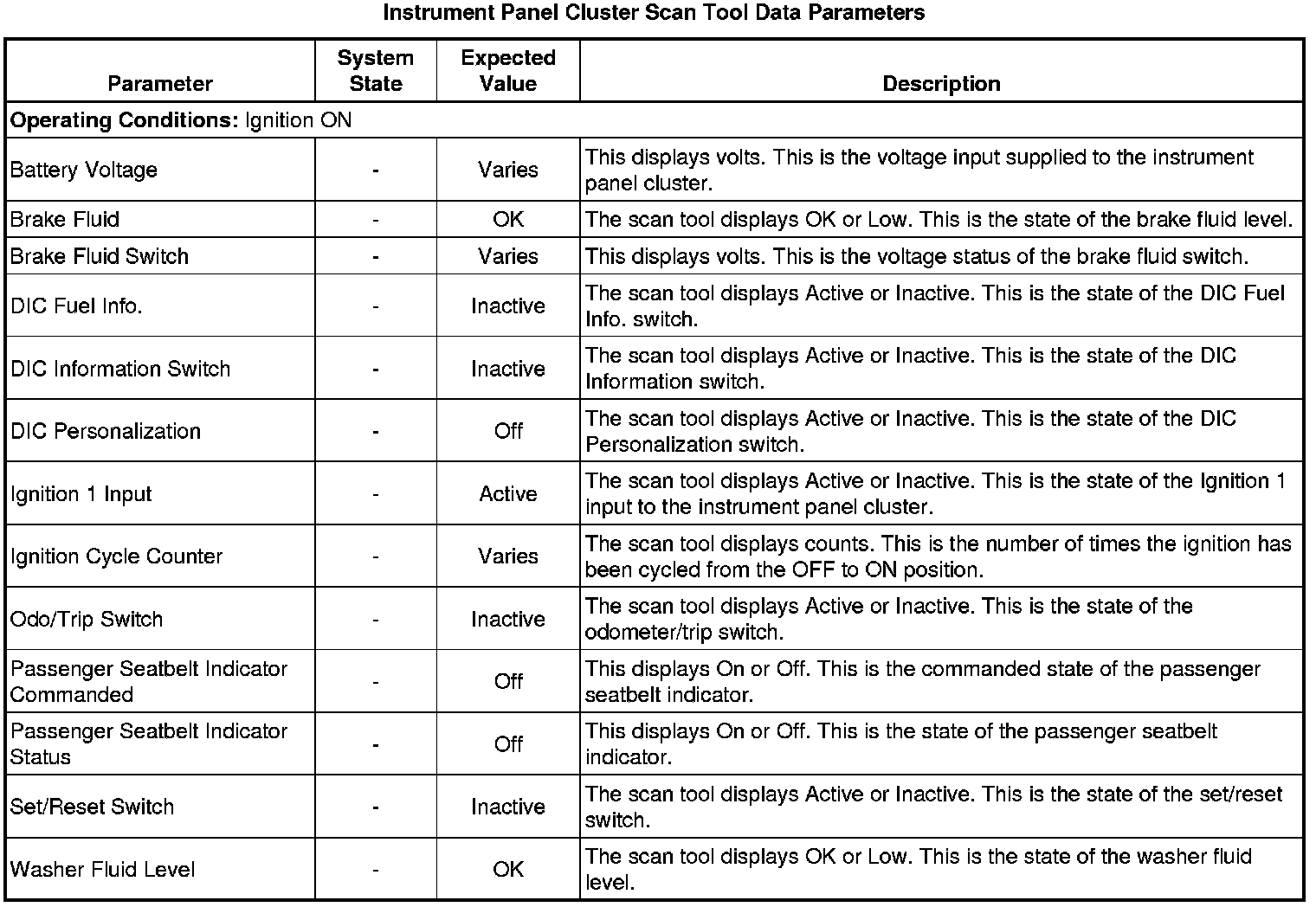 Instrument Cluster Scan Tool Information