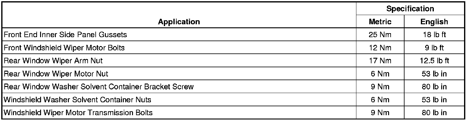 Wiper and Washer Systems: Specifications