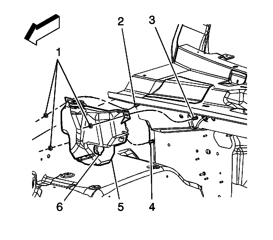 4. Install the washer solvent container (5). Refer to Windshield Washer Solvent Container Replacement (Service and Repair).