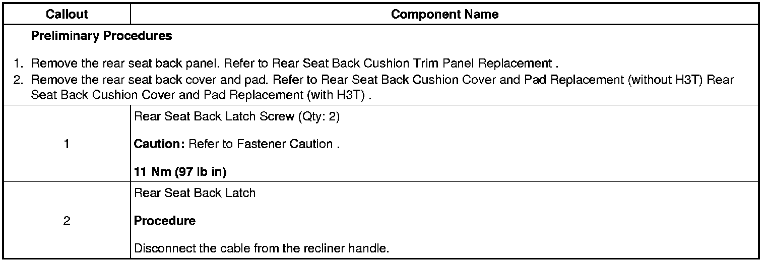 Rear Seat Back Latch Replacement (without H3T)
