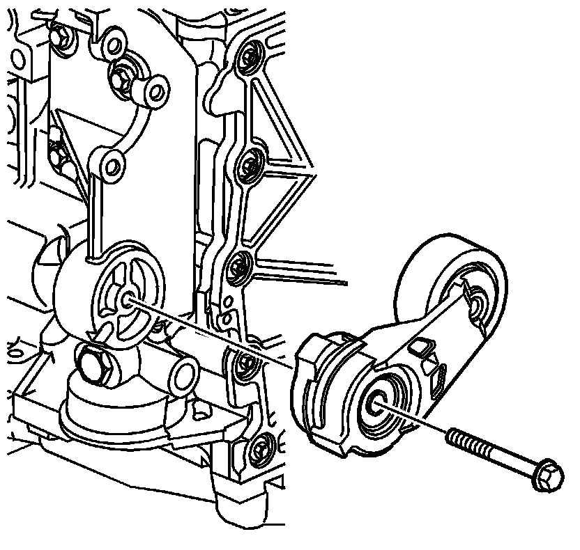 2. Install the drive belt tensioner bolt. Tighten the drive belt tensioner bolt to 50 Nm (37 lb ft).