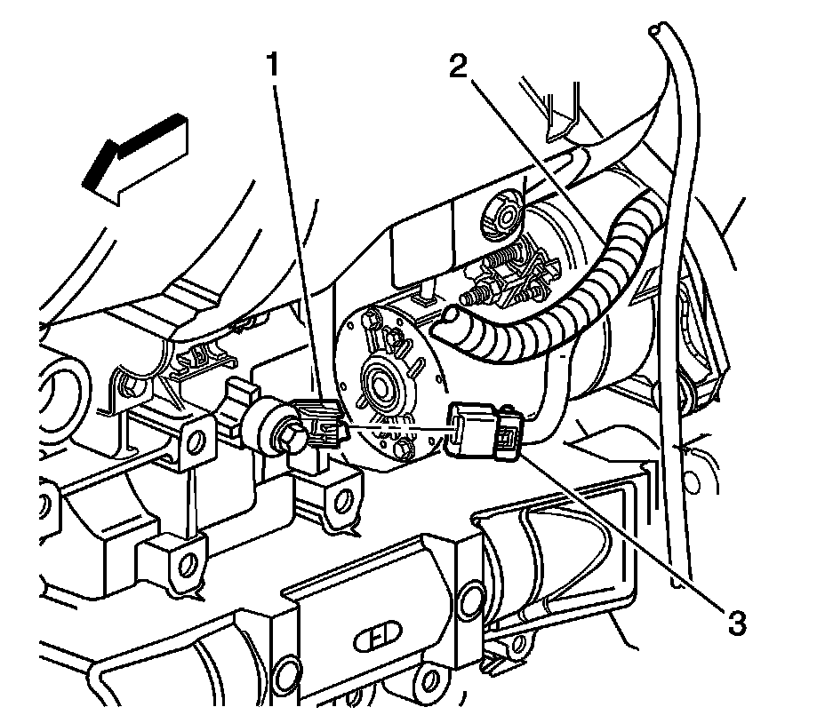 3. Disconnect the engine wiring harness electrical connector (3) from the knock sensor (1).