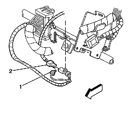 11. Inspect the SIR deployment harness and the appropriate pigtail adapter (2) for damage. Replace as needed.