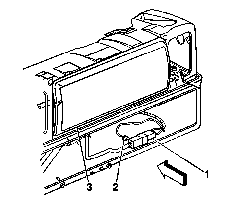 15. Connect the inflator module (1) to the adapter (2) on the SIR deployment harness (3).