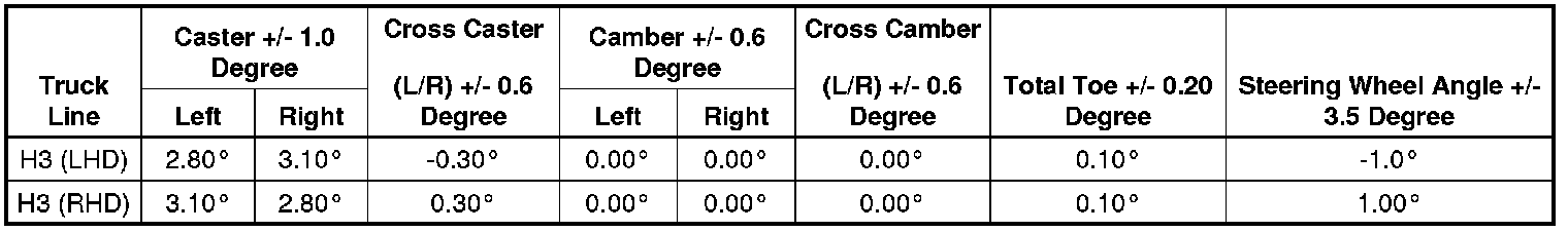 Wheel Alignment Specifications