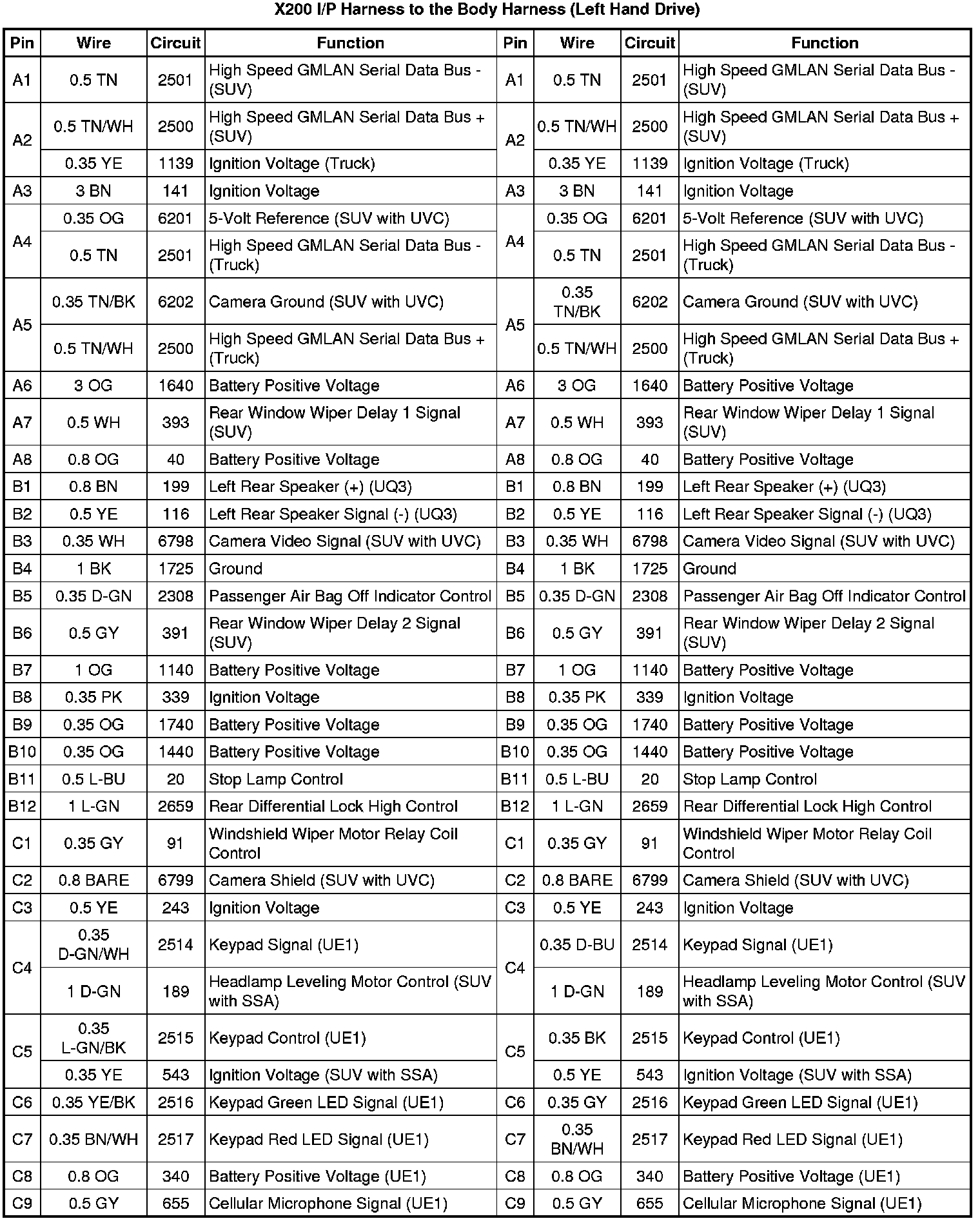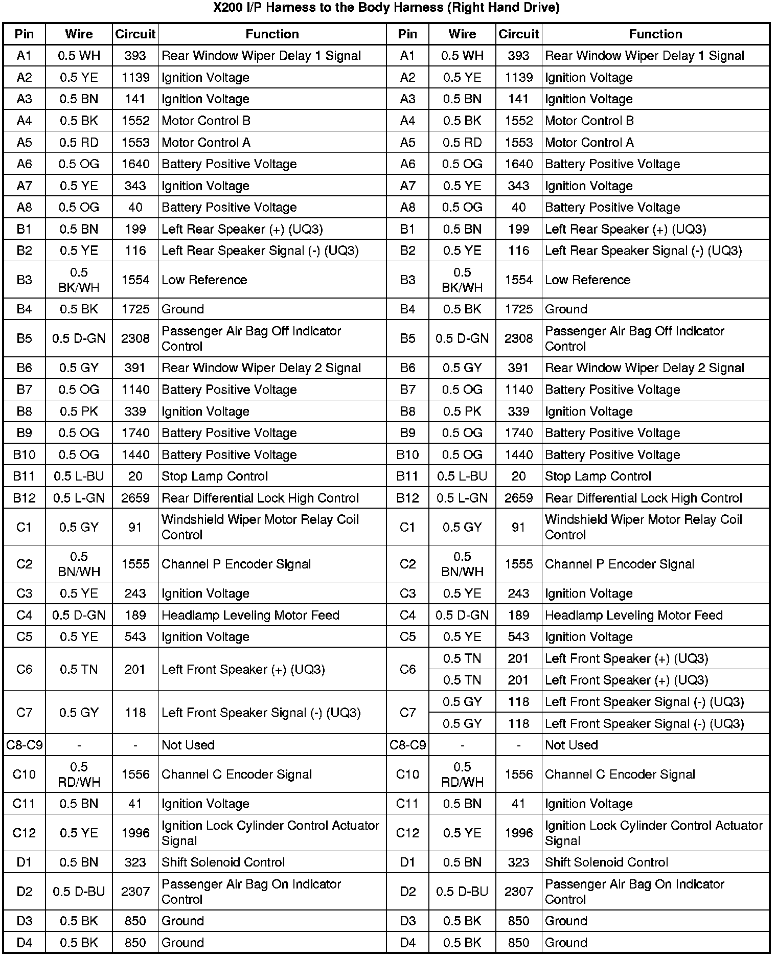 X200 I/P Harness to the Body Harness (Left Hand Drive)