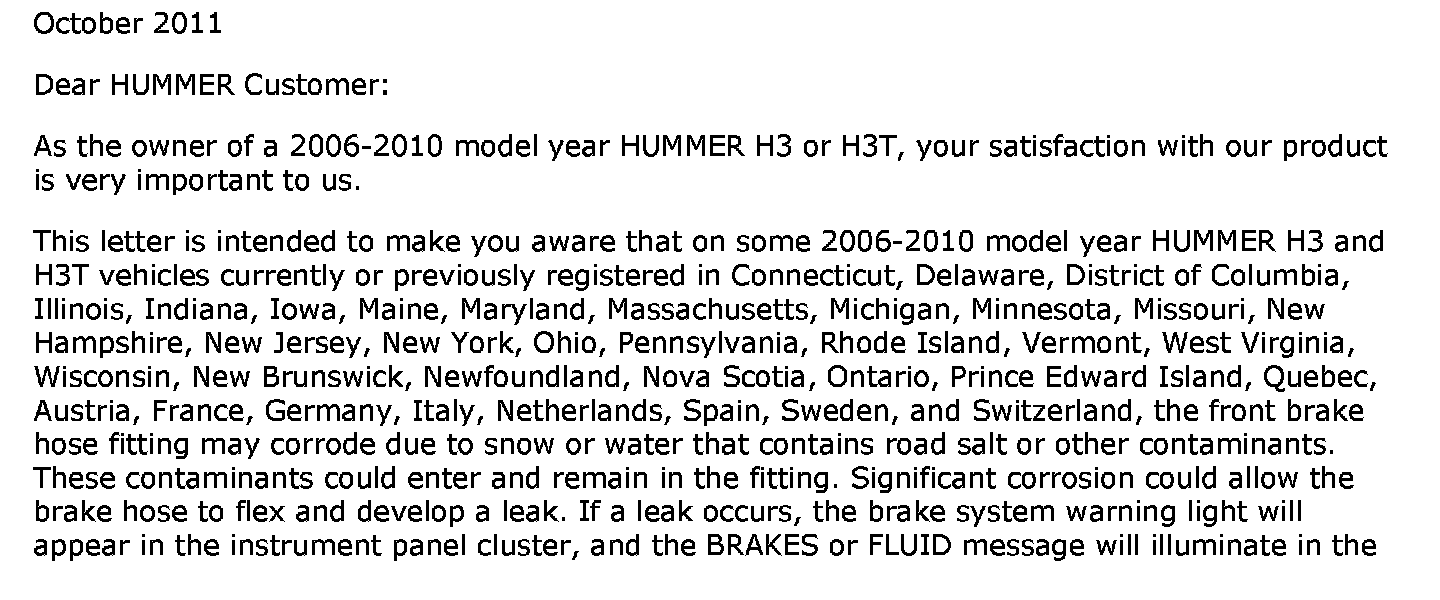 Recall - Front Brake Hose Fitting Corrosion