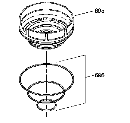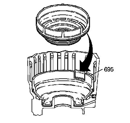 1. Install the transmission (low and reverse clutch outer, center, inner) seals (696) on the low and reverse clutch piston (695).