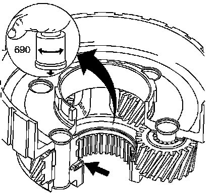 1. Without touching the pinion gears, place a bushing or an output shaft sleeve (690) onto the bearing race, and turn it with the palm of your hand.