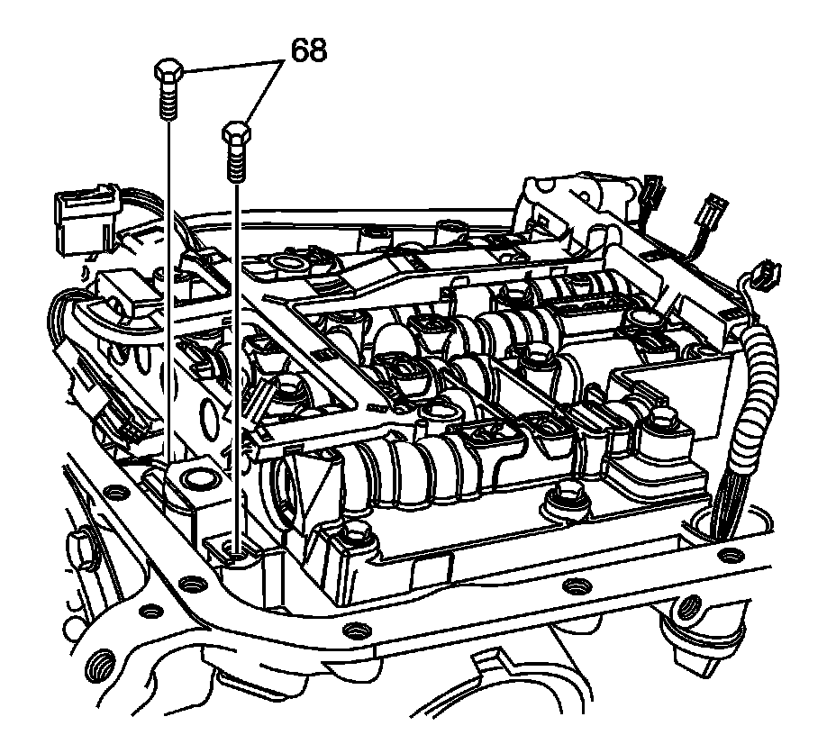 3. Remove the oil pan, gasket, and filter. Refer to Automatic Transmission Fluid and Filter Replacement (Automatic Transmission Fluid and Filter Replacement).