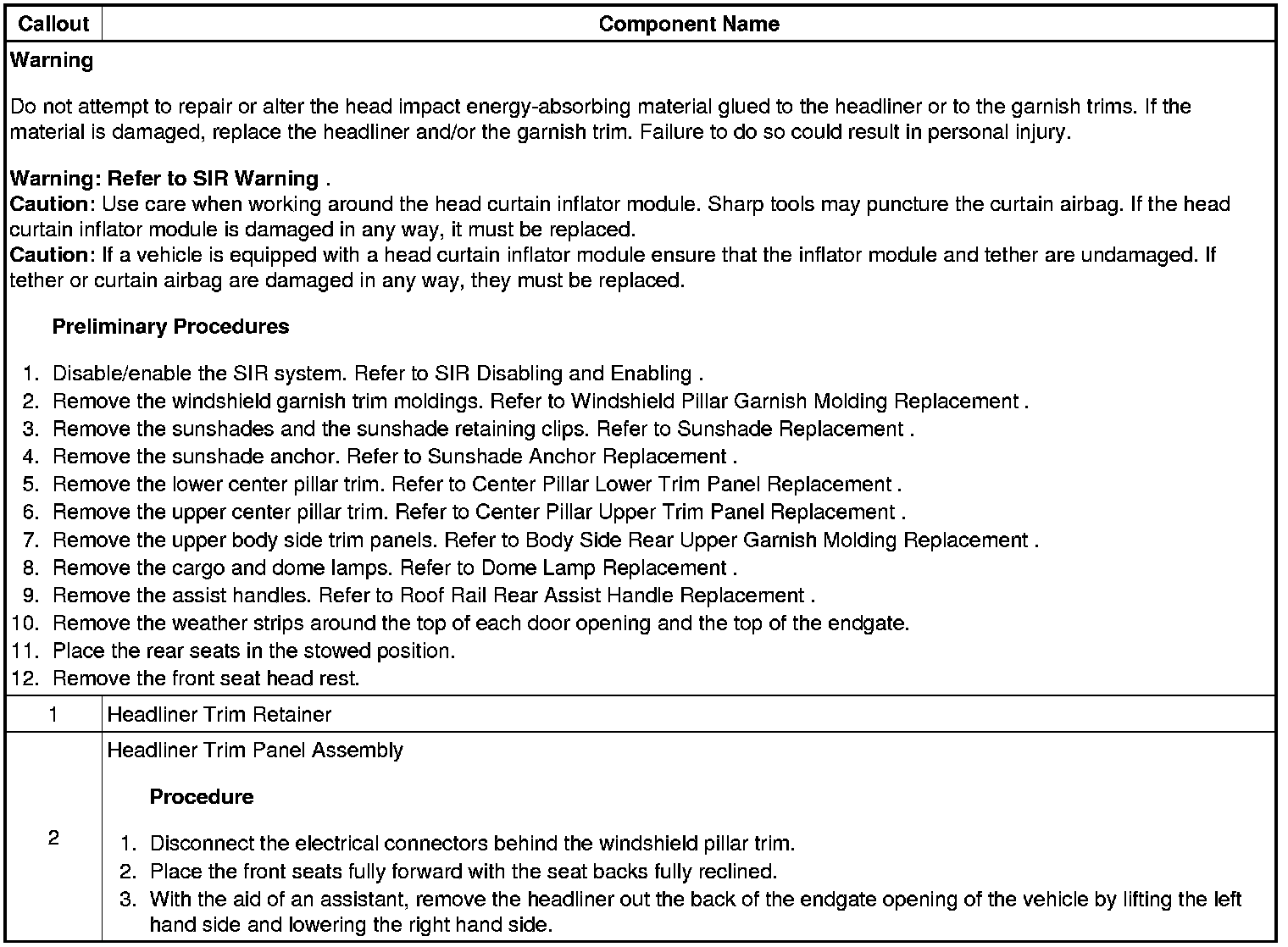 Headlining Trim Panel Replacement (H3)